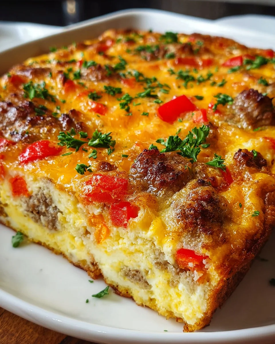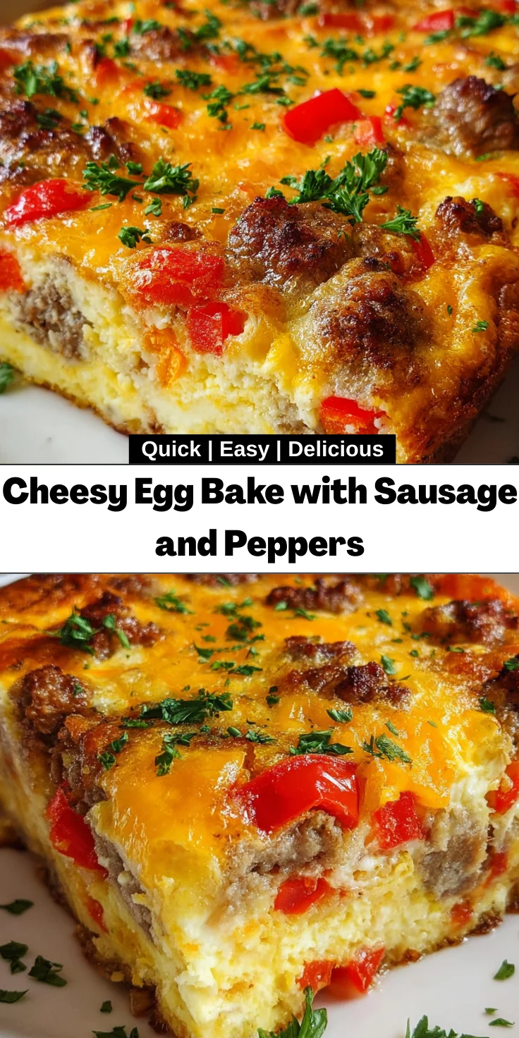 A delicious cheesy egg bake featuring sausage and bell peppers, perfect for any occasion.